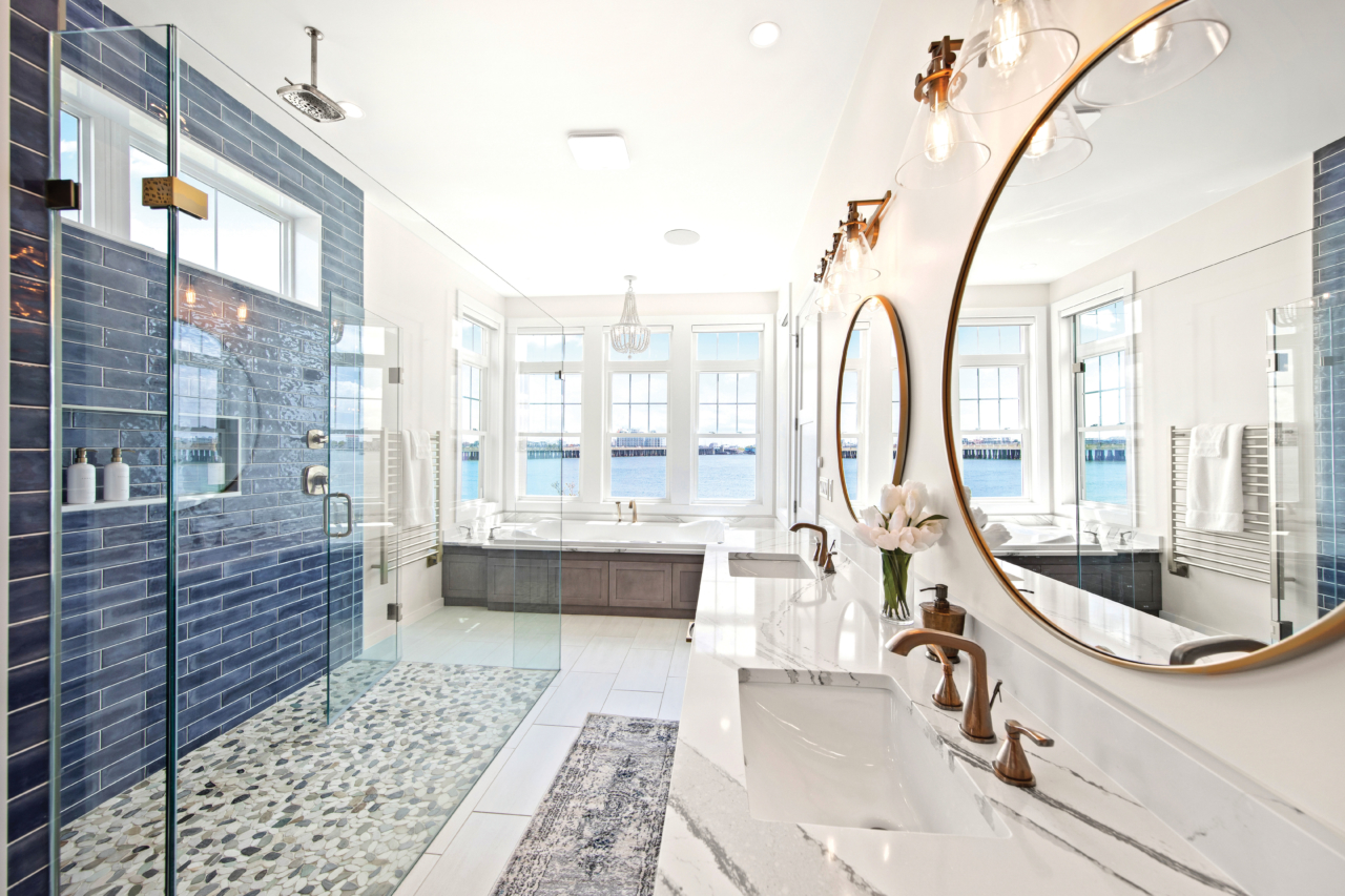 “We worked off of the idea of a home that is coastal contemporary,” said Becky, relating that builder David Bradley of Bradley Construction helped them achieve the vision. “We definitely wanted to maximize the water views, and we wanted a large gathering space along with a number of bedrooms with their own en suites.”
