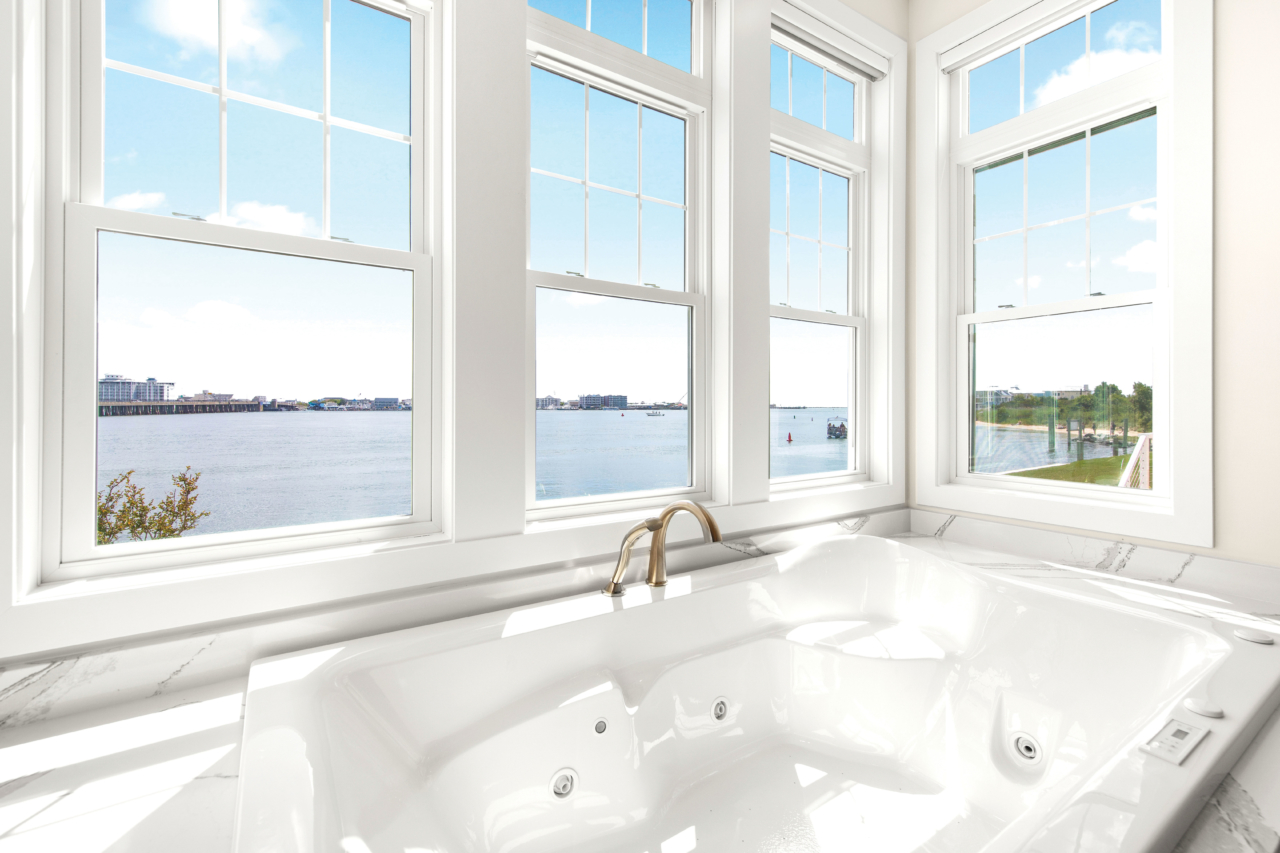 BATHED IN LIGHT A big part of this beautiful home’s sunny disposition are the 98 windows on three levels that drench the space in natural light
