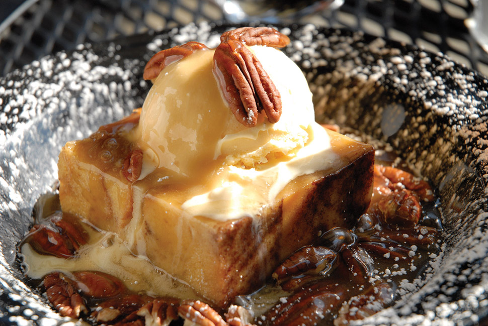 Heat cream, brown sugar and rum until slightly thickened; drizzle over pudding. Top with pecans for an added bite of crunchy flavor.