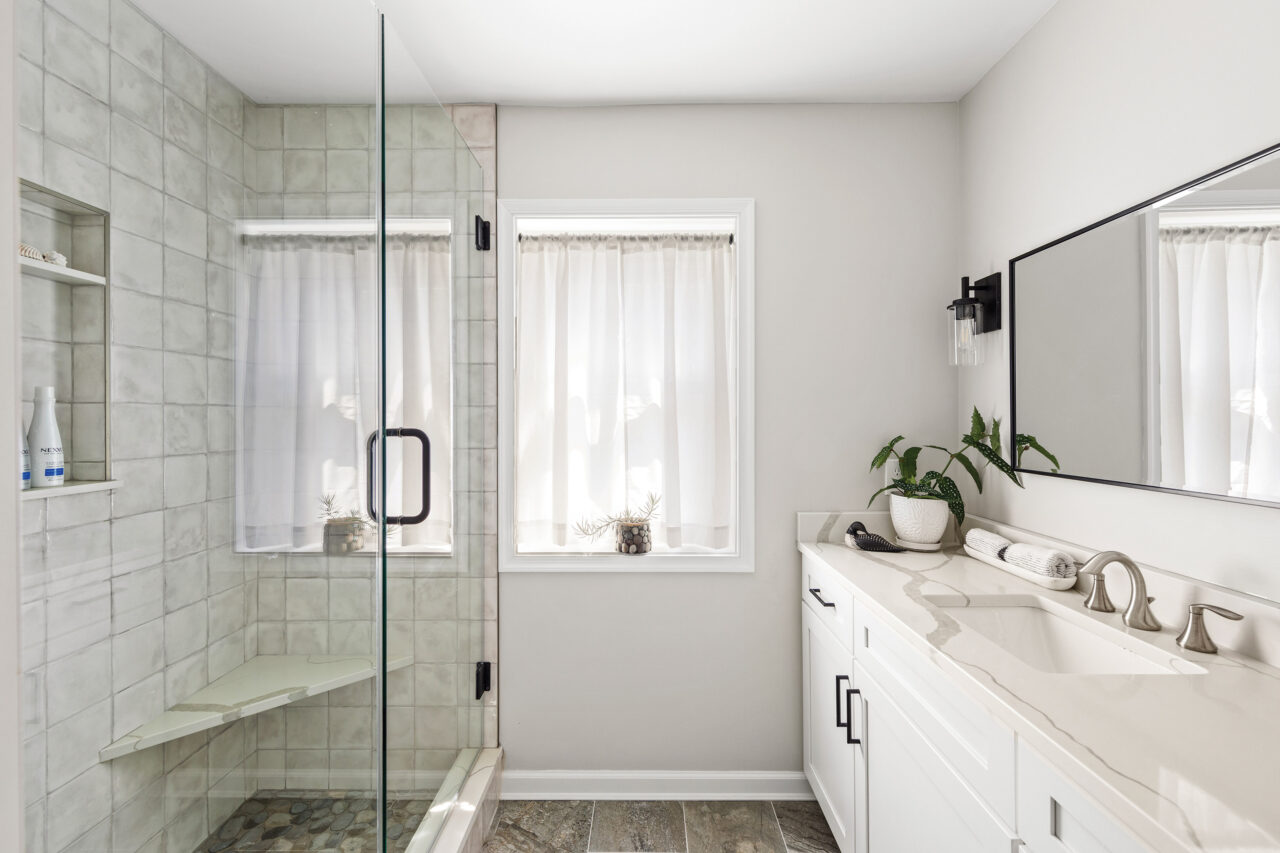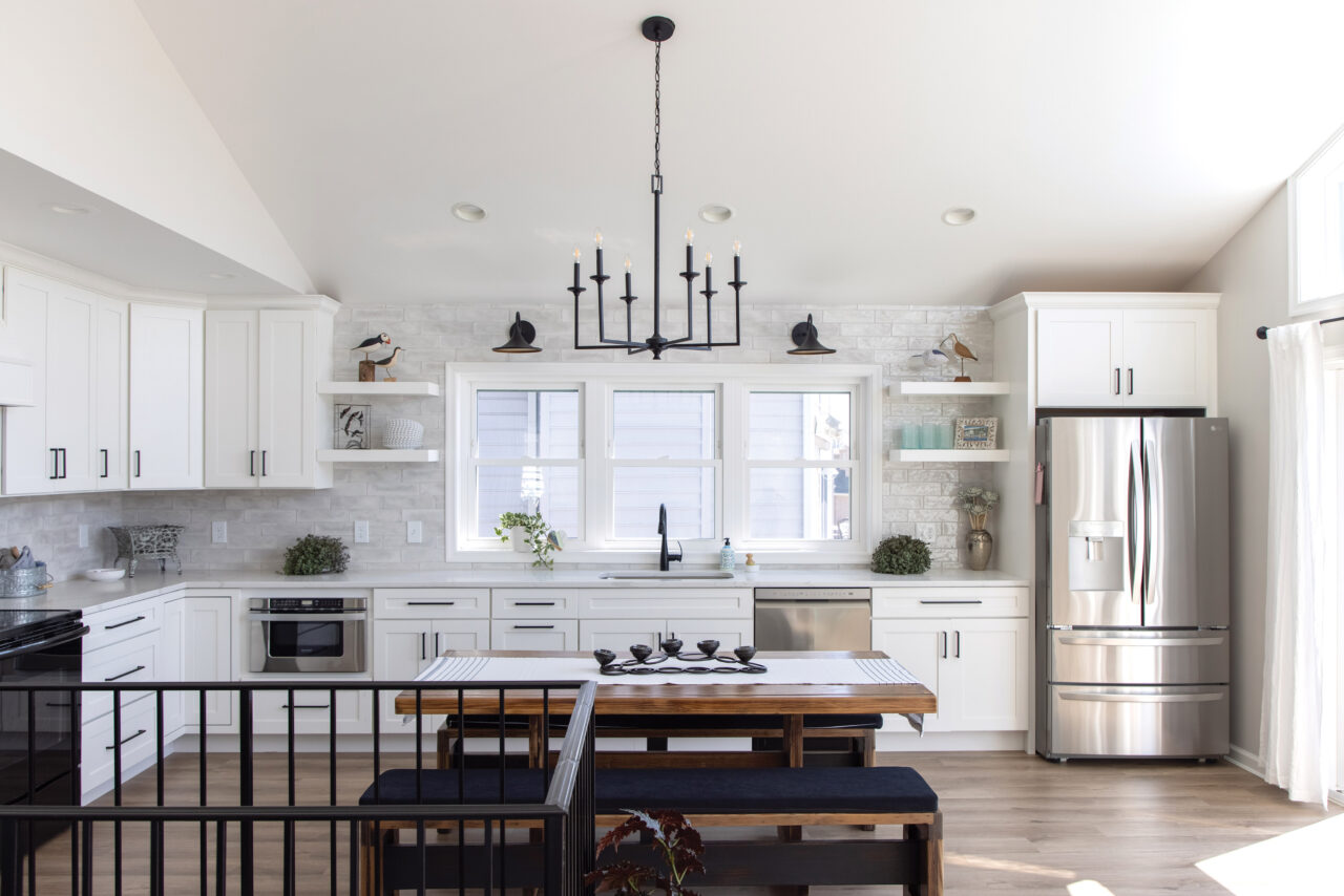 After several trips to the Outer Banks and renting a beach house for the whole family, Kathy realized that the inverted floor plan positioning bedrooms down and living space up was ideal for coastal living. She wanted to replicate this concept at their home in Ocean City without completely reconfiguring the existing floor plan, which included three downstairs bedrooms, two bathrooms, a kitchen and great room.